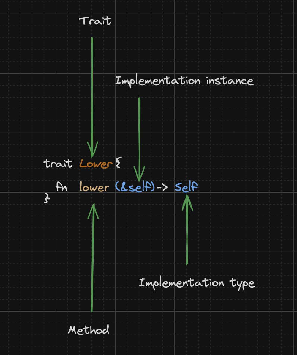 Let’s take the following trait that converts a type to its lowercase equivalent as an example: